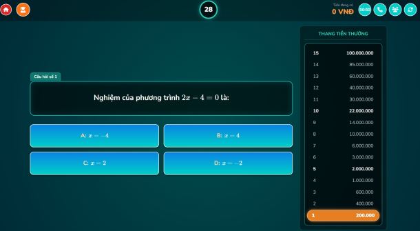 50:50 – Máy tính loại bỏ 2 phương án sai (giúp bạn “gỡ gạc” khi bế tắc)