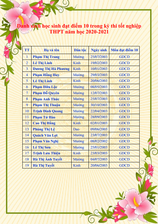 Trường THPT Ngọc Lặc xin chúc mừng các Thầy giáo, Cô giáo và các em học sinh 2K3 đã có nhiều nỗ lực, xuất sắc đạt được kết quả cao trong kỳ thi TN THPT năm 2021. Kết quả đạt được: