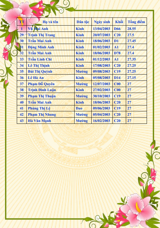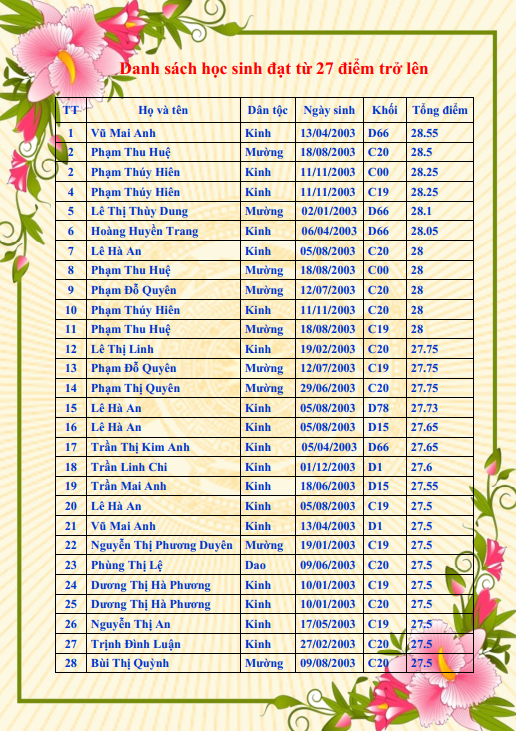 5. Số học sinh đạt từ 27 điểm: 27 em.