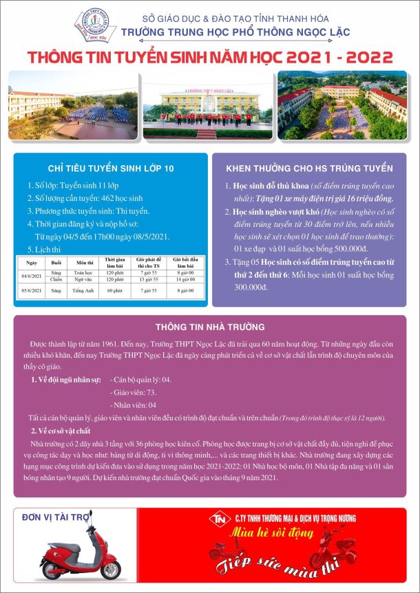 Thông tin tuyển sinh vào 10 THPT Ngọc Lặc năm học 2021 - 2022.