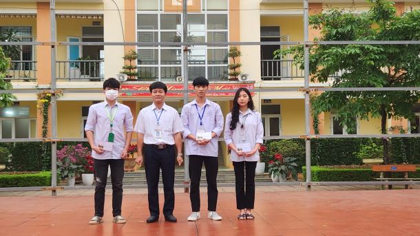 thầy giáo Vũ Ngọc Liêm – Bí thư đảng ủy – HT nhà trường, thầy giáo Cao Văn Dũng - Ủy viên BCH đảng ủy - Bí thư Đoàn trường – phó Ban tổ chức giải lên trao giải cho các tập thể đạt Giải Nhất.