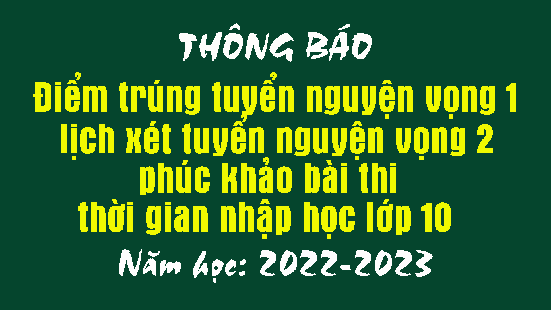 THÔNG BÁO Điểm trúng tuyển nguyện vọng 1, lịch xét tuyển nguyện vọng 2, phúc khảo bài thi, thời gian nhập học lớp 10 Năm học 2022-2023