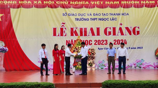 Buổi Lễ khai giảng năm học 2023-2024 đã thành công tốt đẹp. Nhà trường xin chân thành cảm ơn UBND huyện, PGD Ngọc Lặc, VNPT Ngọc Lặc, công ty THHN Trọng Nương, gia đình thầy cô giáo Hoàng Ngọc Hoàng - Lê Thị Hương và các bậc phụ huynh đã gửi tới nhà Trường lời chúc mừng tốt đẹp nhất, những lẵng hoa tươi thắm và những món quà ý nghĩa.